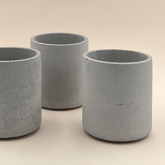 On y retrouve des pots pour bougies en verre ou en béton, avec ou sans couvercle.