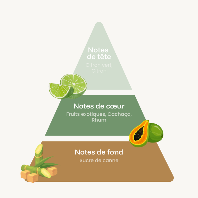 Apportez une note tropicale et festive à vos créations avec le parfum Caïpirinha Citron Vert, idéal pour les bougies parfumées et diffuseurs d’intérieur. Les notes de tête pétillantes de citron vert et de citron offrent une ouverture fraîche et acidulée, tandis que le cœur exotique mêle fruits tropicaux, cachaça et rhum pour une touche chaleureuse et festive. La base sucrée de sucre de canne apporte douceur et gourmandise, créant un sillage lumineux et convivial.