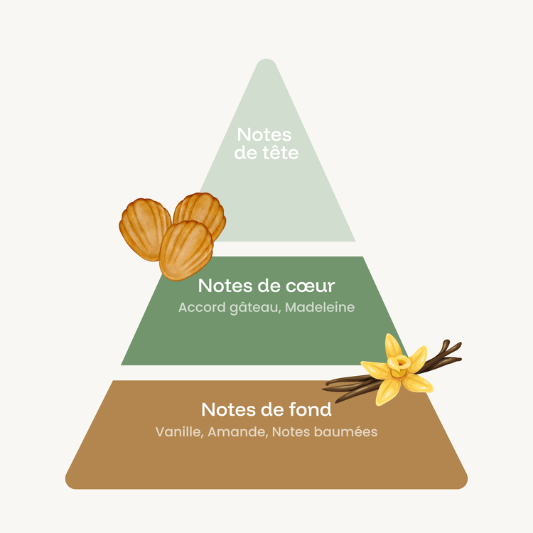 Savourez la douceur réconfortante du parfum Madeleine, une fragrance gourmande qui évoque la chaleur et les souvenirs d’un gâteau fraîchement préparé. Son cœur sucré d’accord gâteau et de madeleine se marie à merveille avec une base délicate de vanille, amande et notes baumées, créant un sillage doux, chaleureux et irrésistiblement gourmand.