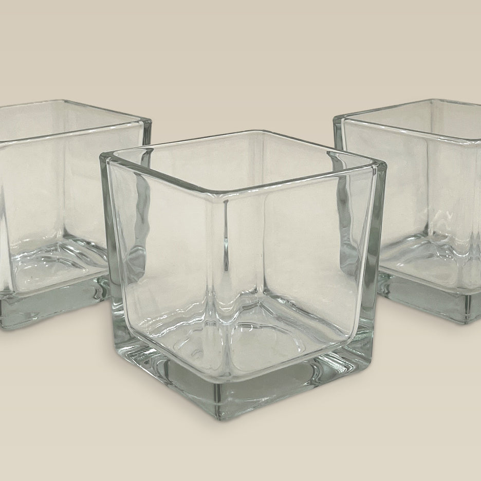 Le cube en verre transparent de 250 ml est un contenant élégant et intemporel, parfait pour la fabrication de bougies modernes et décoratives.