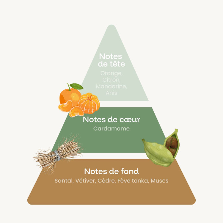 Notes de tête : Orange, Citron, Mandarine, Anis