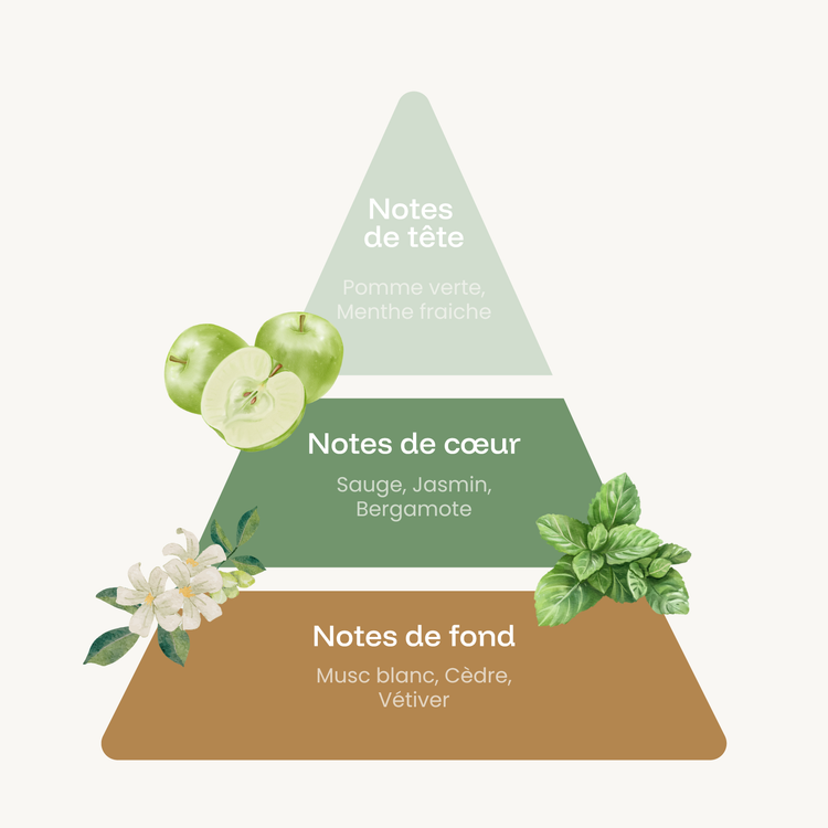Charismatique et moderne, Le Boss incarne l’élégance naturelle et la confiance en soi. L’ouverture vive mêlant pomme verte et menthe fraîche apporte une énergie franche et stimulante. En cœur, la sauge, le jasmin et la bergamote révèlent une alliance raffinée, à la fois aromatique et légèrement florale. Le fond s’impose avec des notes profondes de musc blanc, de cèdre et de vétiver, dessinant un sillage puissant et équilibré.