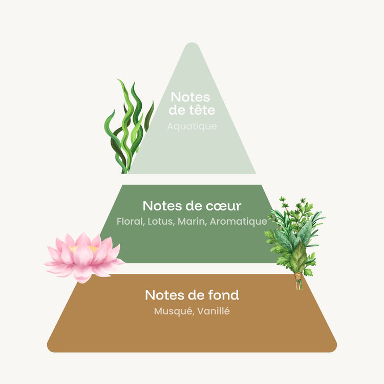 Plonger dans une atmosphère fraîche et marine avec notre fragrance Algue, idéale pour la création de bougies parfumées et de diffuseurs d’intérieur. Cette fragrance unique évoque la pureté de l’océan en associant des notes de tête aquatiques et vivifiantes, un cœur floral délicatement marqué par le lotus, des accords marins et aromatiques, ainsi qu’un fond musqué et vanillé qui apporte douceur et chaleur.