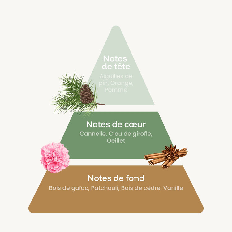 Éveillez vos sens avec Épices, une fragrance gourmande et boisée qui évoque l’esprit des fêtes et des moments conviviaux. L’ouverture mêle la fraîcheur des aiguilles de pin à la vivacité de l’orange et à la douceur acidulée de la pomme, offrant une première impression pétillante et lumineuse. Au cœur, la cannelle, le clou de girofle et l’œillet apportent chaleur, épices et profondeur, créant un sillage réconfortant et captivant. Enfin, le bois de gaïac, le patchouli, le bois de cèdre et la vanille viennent envelopper la composition d’une base boisée et gourmande, qui prolonge l’expérience olfactive avec élégance.