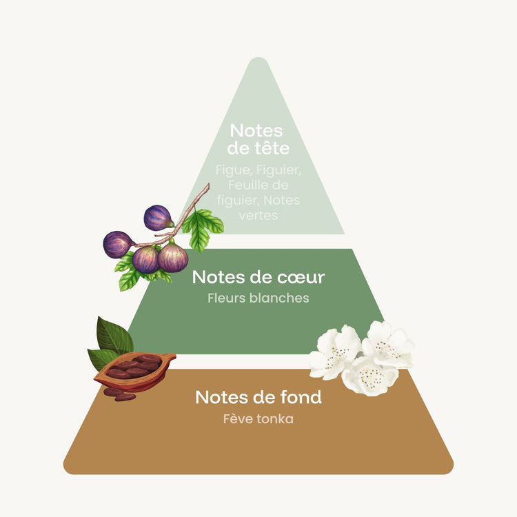 Évoquant la fraîcheur d’un verger ensoleillé, Feuille de Figuier est une fragrance délicate et végétale qui apporte une touche naturelle et raffinée à vos créations parfumées. La composition dévoile d’abord des notes de figue, figuier, feuille de figuier et touches vertes, avant de s’épanouir en un cœur délicatement floral de fleurs blanches. En fond, la fève tonka apporte une chaleur subtile qui enveloppe et ravive le parfum pour un sillage tendre et réconfortant.