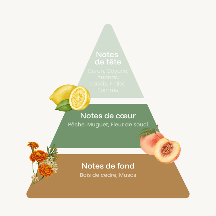 Évadez-vous sous les tropiques avec Fruits Exotiques, une fragrance vibrante et fruitée qui réveille les sens et apporte une touche de soleil à vos créations parfumées. Les premières notes fraîches et pétillantes de citron, goyave, ananas, cassis, fraise et pomme offrent une ouverture acidulée et joyeuse. Le cœur, délicatement floral et fruité, associe la douceur de la pêche, la fraîcheur du muguet et la légèreté de la fleur de souci. Le fond chaleureux de bois de cèdre et de muscs apporte profondeur et élégance, pour un sillage doux et enveloppant.