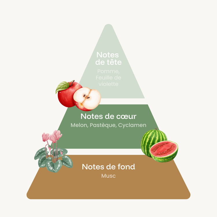 Laissez-vous séduire par la fraîcheur fruitée du parfum Pastèque, une fragrance estivale et désaltérante, idéale pour vos bougies parfumées et diffuseurs d’intérieur. Les notes de tête de pomme et de feuille de violette apportent une ouverture croquante et verte, suivies par un cœur juteux de melon, pastèque et cyclamen qui évoque la fraîcheur des fruits d’été. Enfin, une base douce et musquée vient envelopper l’ensemble, apportant une touche délicate et apaisante.