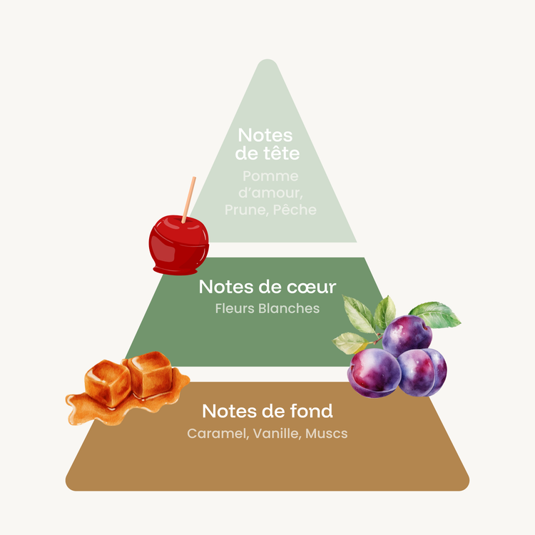 Laissez-vous séduire par la douceur sucrée et fruitée du parfum Pomme d’Amour, une fragrance gourmande et délicate, parfaite pour vos bougies parfumées et diffuseurs d’intérieur. L’ouverture pétillante de pomme d’amour, prune et pêche apporte une première note fruitée et joyeuse. Le cœur floral, composé de fleurs blanches, diffuse élégance et douceur, tandis que la base gourmande de caramel, vanille et muscs enveloppe l’ensemble d’un sillage chaud, sucré et réconfortant.