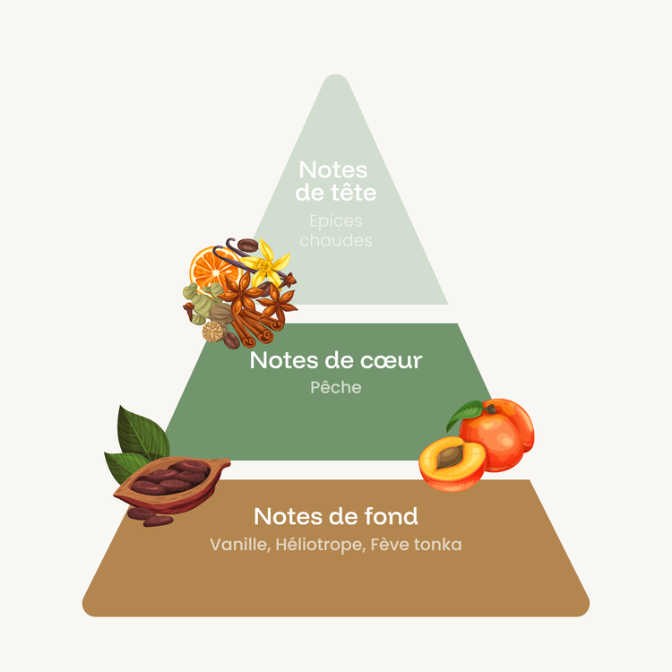 Succombez au charme envoûtant du parfum Vanille Épicée, une fragrance chaleureuse et gourmande qui sublime vos créations parfumées. L’ouverture épicée dévoile un caractère intense et raffiné, adouci par un cœur fruité de pêche aux accents veloutés. En fond, la vanille s’associe à l’héliotrope et à la fève tonka pour offrir un sillage suave, rond et délicatement sensuel.