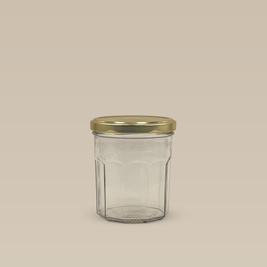 Le verre type pot à confiture de 380 ml avec couvercle doré est un contenant original et raffiné, parfait pour la création de bougies décoratives et authentiques.